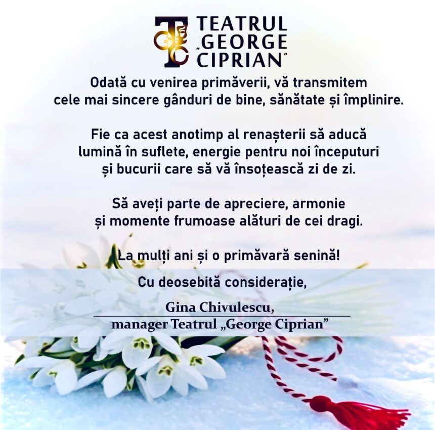 felicitari Gina Chivulescu, manager Teatrul ” George Ciprian ” Buzău 28 februarie 2026 de Stiri Buzau Media DISTRIBUIE Stiri Buzau Media 28 februarie 2026 28 februarie 2026 Articolul anterior Clinica Medicală OPTIMED Buzău Articolul următor Daniel Costache, manager Muzeul Județean Buzău Buzăumedia pe Facebook Ultimele știri Romeo Lungu: În sănătate, colaborarea dintre spitale face diferența pentru pacienți POLITICA STIRI BUZAU Compania de Apă Buzău: SMS-Sender este serviciul prin care Compania de Apă Buzău transmite notificări rapide utilizatorilor ADMINISTRATIV ANUNTURI BUZAU STIRI BUZAU AJF Buzău: Prima etapă din Play-Off-ul Ligii a 4-a începe în această sâmbătă! ADMINISTRATIV SPORT STIRI BUZAU Constantin Toma: Am vizitat ieri unul din șantierele de investiții din Buzău, Aqua Park-ul care ar trebui să se finalizeze până la data de 1 iunie 2026 ADMINISTRATIV STIRI BUZAU Teatrul George Ciprian: În curând, o nouă premieră la Teatrul „George Ciprian”! CULTURA STIRI BUZAU Primăria comunei Scorțoasa: ANUNȚ! STIRI BUZAU Sorin Cîrjan: Vă rugăm să sprijiniți spitalul, medicii și personalul instituției! STIRI BUZAU Vizită importantă astăzi la Spitalul Județean de Urgență Buzău STIRI BUZAU Carmen Orban: Astăzi am efectuat o vizită de lucru la Spitalul Județean de Urgență Buzău STIRI BUZAU Consiliul Județean Buzău reduce cheltuielile aparatului propriu cu peste 1,19 milioane de lei STIRI BUZAU