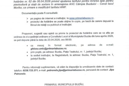 Începând cu data de 14 aprilie 2026, programul de lucru va fi reluat conform orarului obișnuit. Plata facturilor se…