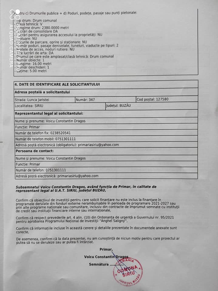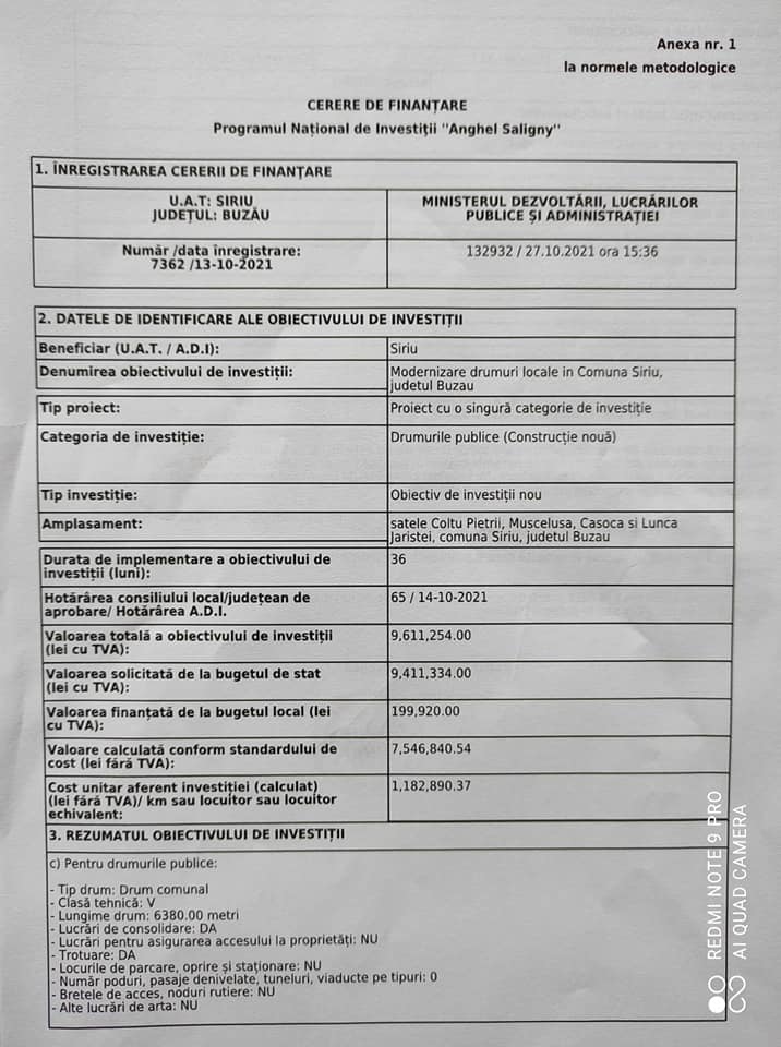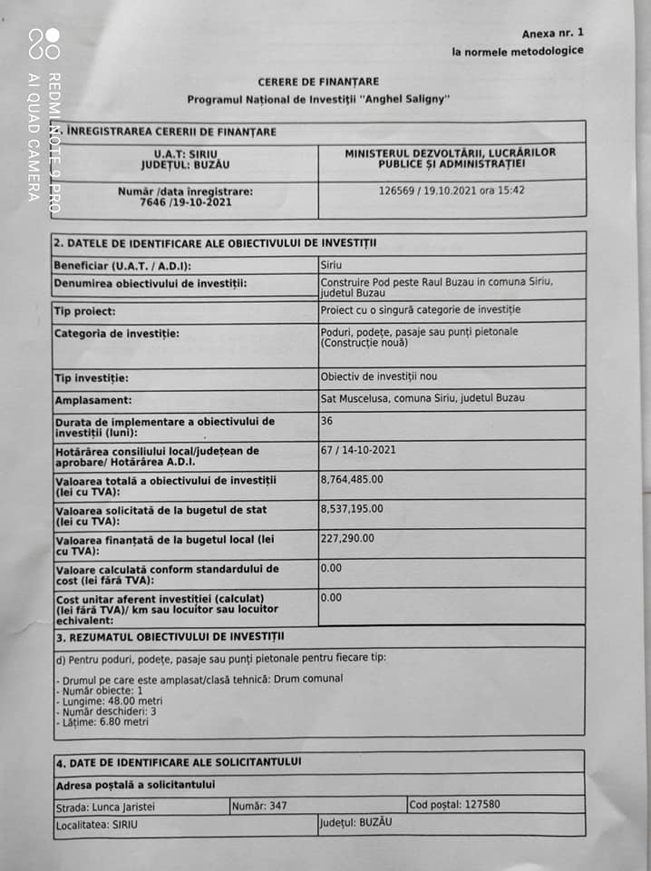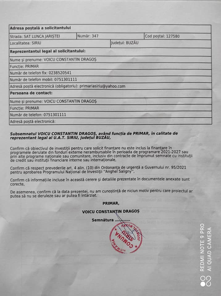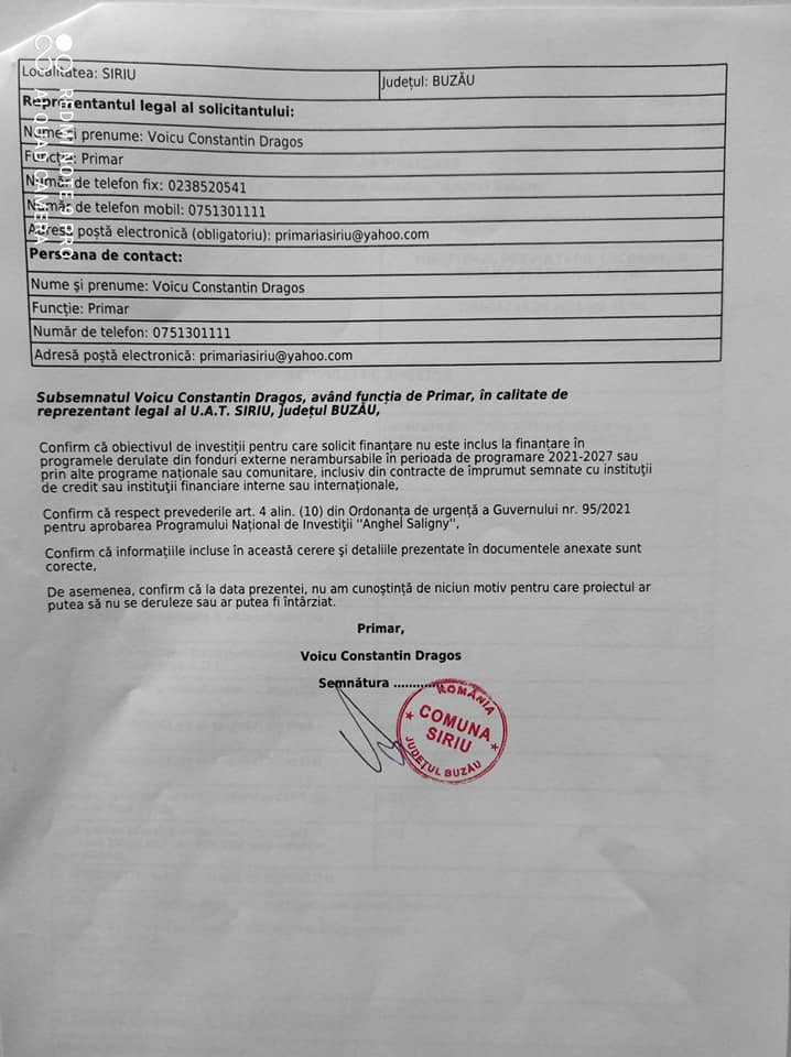 Primăria comunei Siriu a depus un număr de 5 cereri de finanțare prin Programul Național de Investiții ,, Anghel Saligny,, :