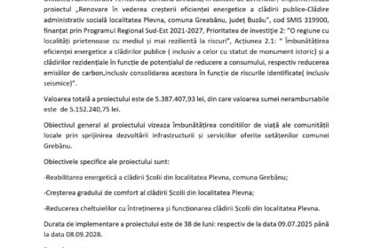 În scopul igienizării rezervorului de apă potabilă Valea Ratei, UAT Murgești, joi, 16 octombrie, interval orar 13.00 – 16.00, furnizarea…