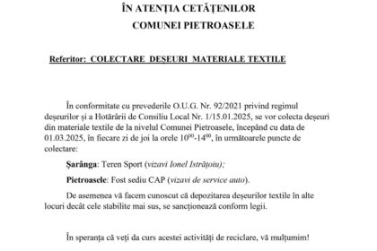 Vă invităm să alegeți să protejați mediul înconjurător prin reducerea cantității de hârtie consumată. În acest sens, dorim să vă…