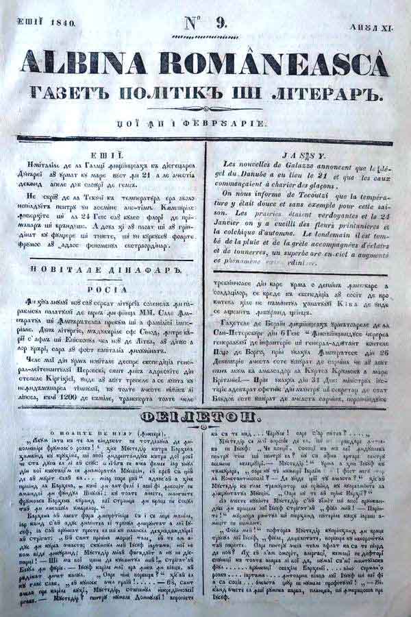 Pe 1 iunie 1829 apare la Iaşi, Moldova, sub direcţia lui Gheorghe Asachi, Albina românească, prima gazetă în limba română apărută în Moldova. Albina Românească a fost o gazetă politico-literară care a apărut bisăptămânal la Iași între 1 iunie 1829 – 3 ianuarie 1835 și 3 ianuarie 1837 – 2 ianuarie 1850.