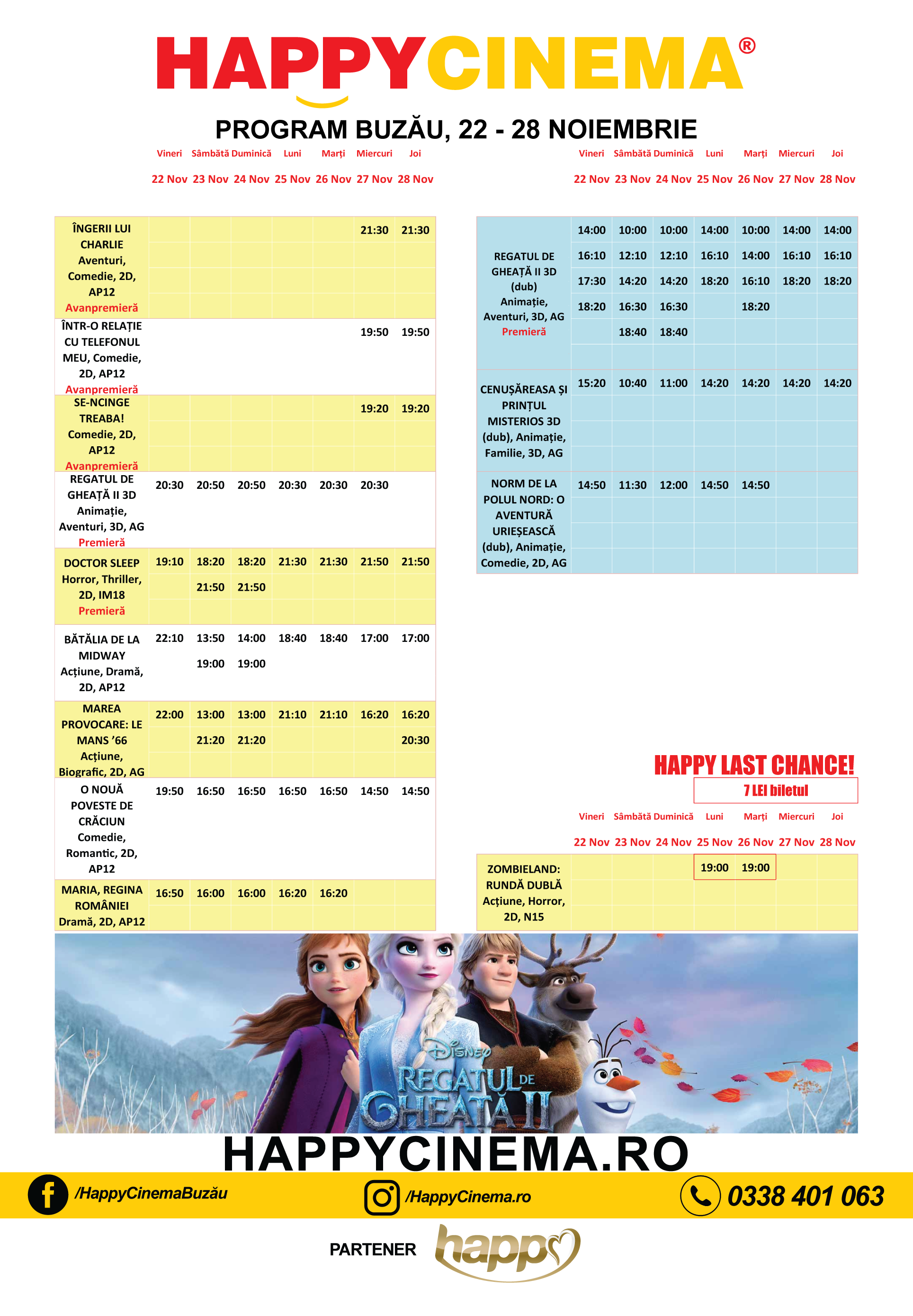 Filme noi pentru toate vârstele și pentru toate gusturile, la Happy Cinema Buzău