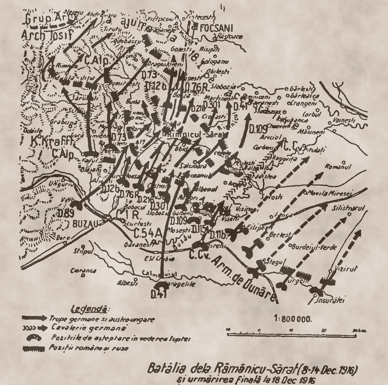 1916: Bătălia de la Râmnicu Sărat. Trupele ruso-române se retrag spre Focşani şi Siretul inferior