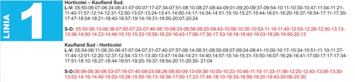 Retur: Kaufland Sud (Patinoar), Stație carburant, BIG, ACR, Piața Centrală, Colegiul BP Hașdeu, Gară, Spital CFR, Depou CFR, Parc Marghiloman, Liceul CFR, Horticolei.