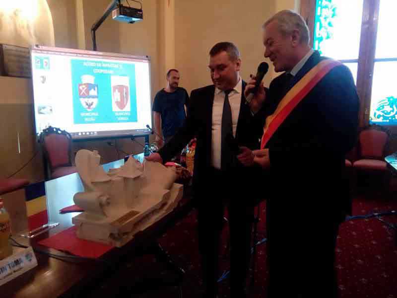 Înainte de semnarea acordului primarul Buzăului Constantin Toma a explicat că în ultima şedinţă de consiliu local ,,am pus pe ordinea de zi înfrăţirea pentru totdeauna cu acest oraş din nordul Moldovei. A fost o înţelegere pe cinci ani care s-a terminat în 2017, deci nu mai funcţiona şi am considerat, având în vedere Centenarul de anul viitor, să încercăm să facem o şedinţă comună cu ei”.