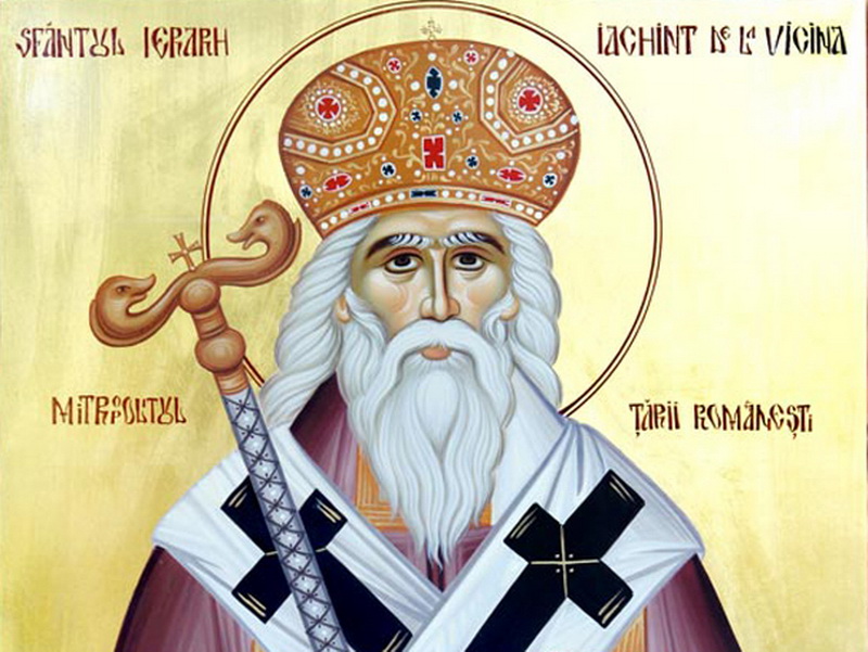 Sfântul Iachint de Vicina a fost ultimul mitropolit al Vicinei si primul mitropolit al Tarii Romanesti. El a organizat viata bisericeasca din Tara Romaneasca – a zidit biserici, a hirotonit preoti, l-a adus pe Sfantul Nicodim de la Tismana sa organizeze viata din manastiri dupa modelul prezent in Muntele Athos si a purtat de grija si romanilor transilvaneni, carora le-a trimis misionari si persoane hirotonite. Sfantul Ierarh Iachint a trecut la cele vesnice in anul 1372. A fost ingropat langa biserica mitropolitana de la Argeș”.