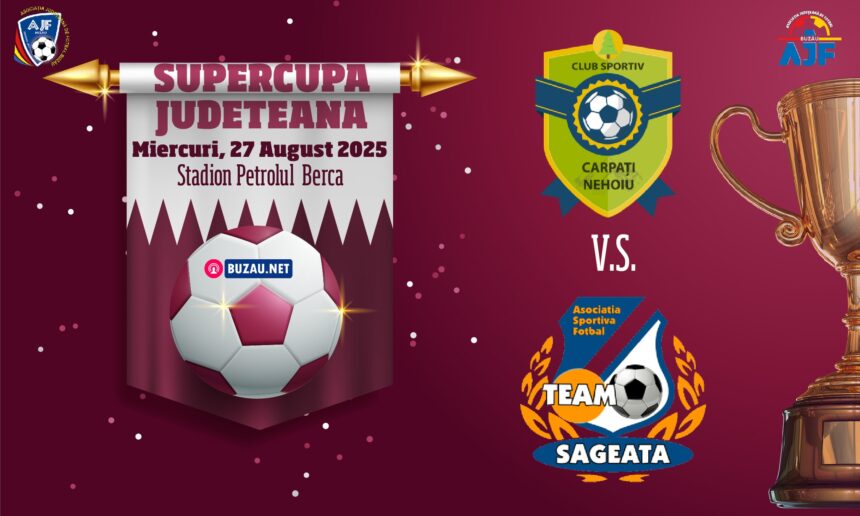 Astfel, miercuri, 27 august, ora 17:30, pe terenul echipei Petrolul Berca, se va disputa Supercupa Județeană între CS Carpați Nehoiu și ACS Team Săgeata.