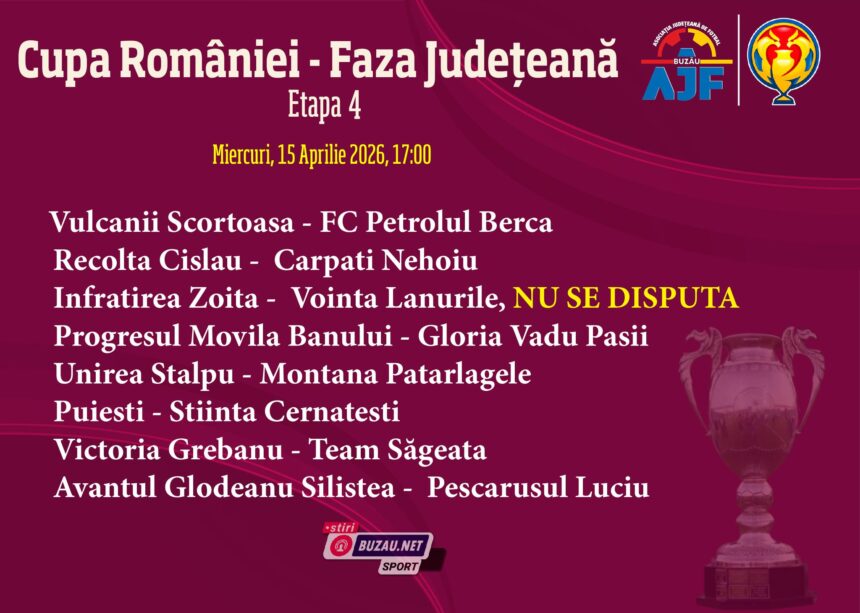 Astăzi, de la ora 17:00, se dispută meciurile din etapa a 4-a a Cupei României – faza județeană