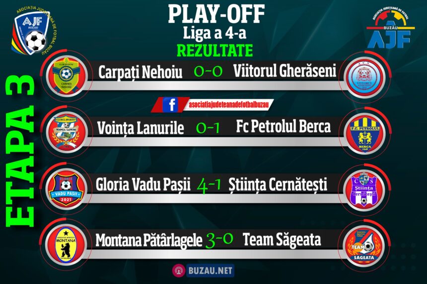 Surpriza etapei a venit de la Viitorul Gherăseni, care a reușit un rezultat remarcabil, 0-0, pe terenul ocupantei locului secund, Carpați Nehoiu. Un rezultat care demonstrează încă o dată că lupta din play-off este deschisă și imprevizibilă!