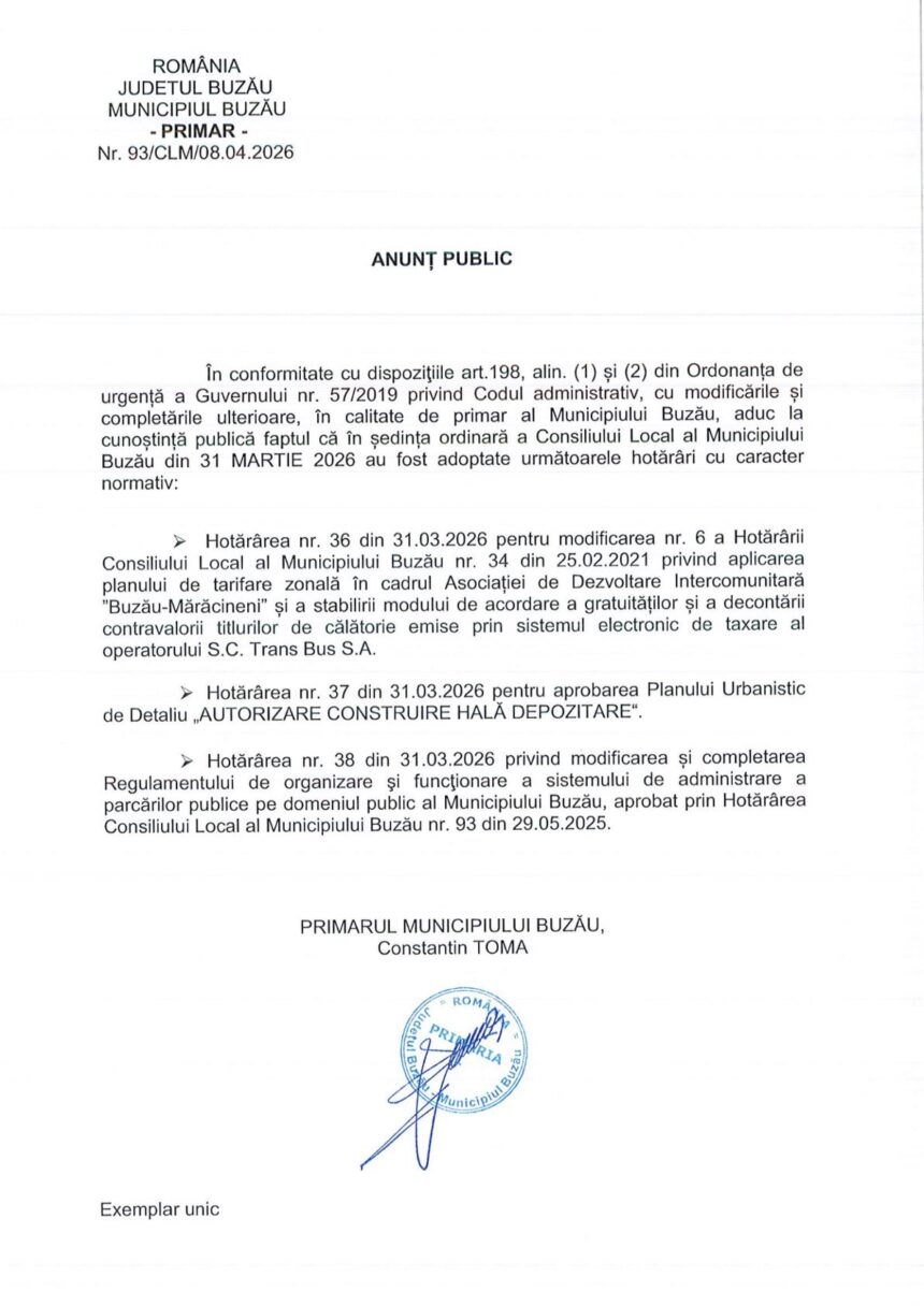 Primăria Municipiului Buzău: ANUNȚ PUBLIC!