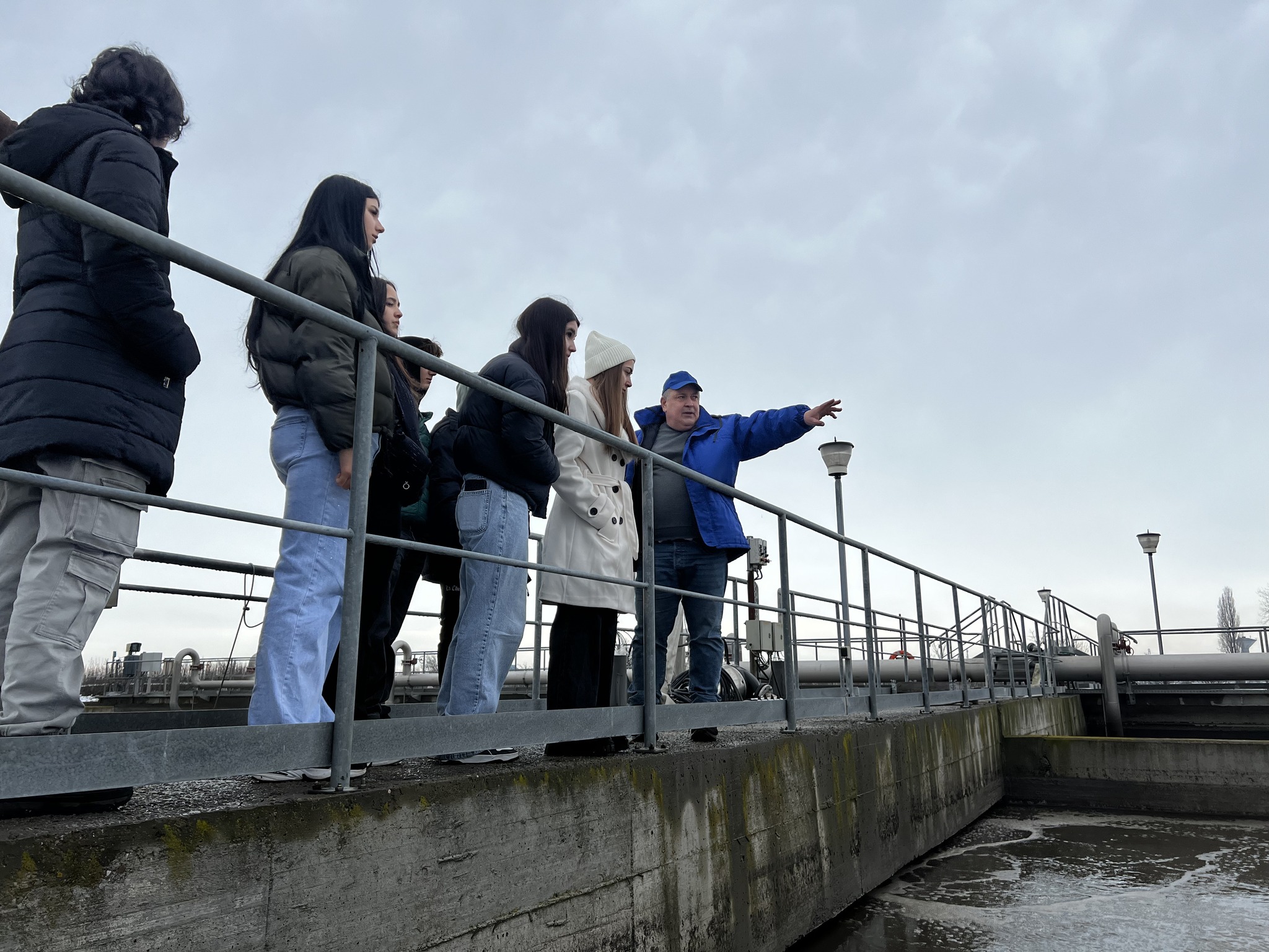 Colegii noștri le-au prezentat, pas cu pas, procesul de epurare a apelor uzate – de la etapa mecanică, unde sunt reținute deșeurile solide, până la procesele biologice prin care apa este curățată înainte de a fi redată mediului. Elevii au aflat și cum, din nămolul rezultat, se produce biogazul – o resursă energetică valorificată ulterior în cadrul stației.