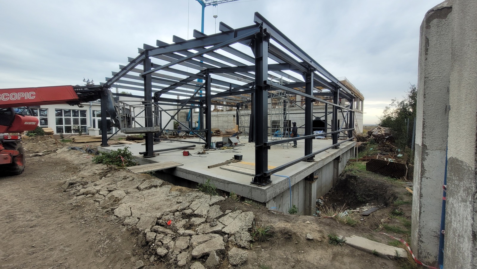 S-au finalizat lucrările la subsolul halei de deshidratare nămol, acum se lucrează la structura metalică a halei.