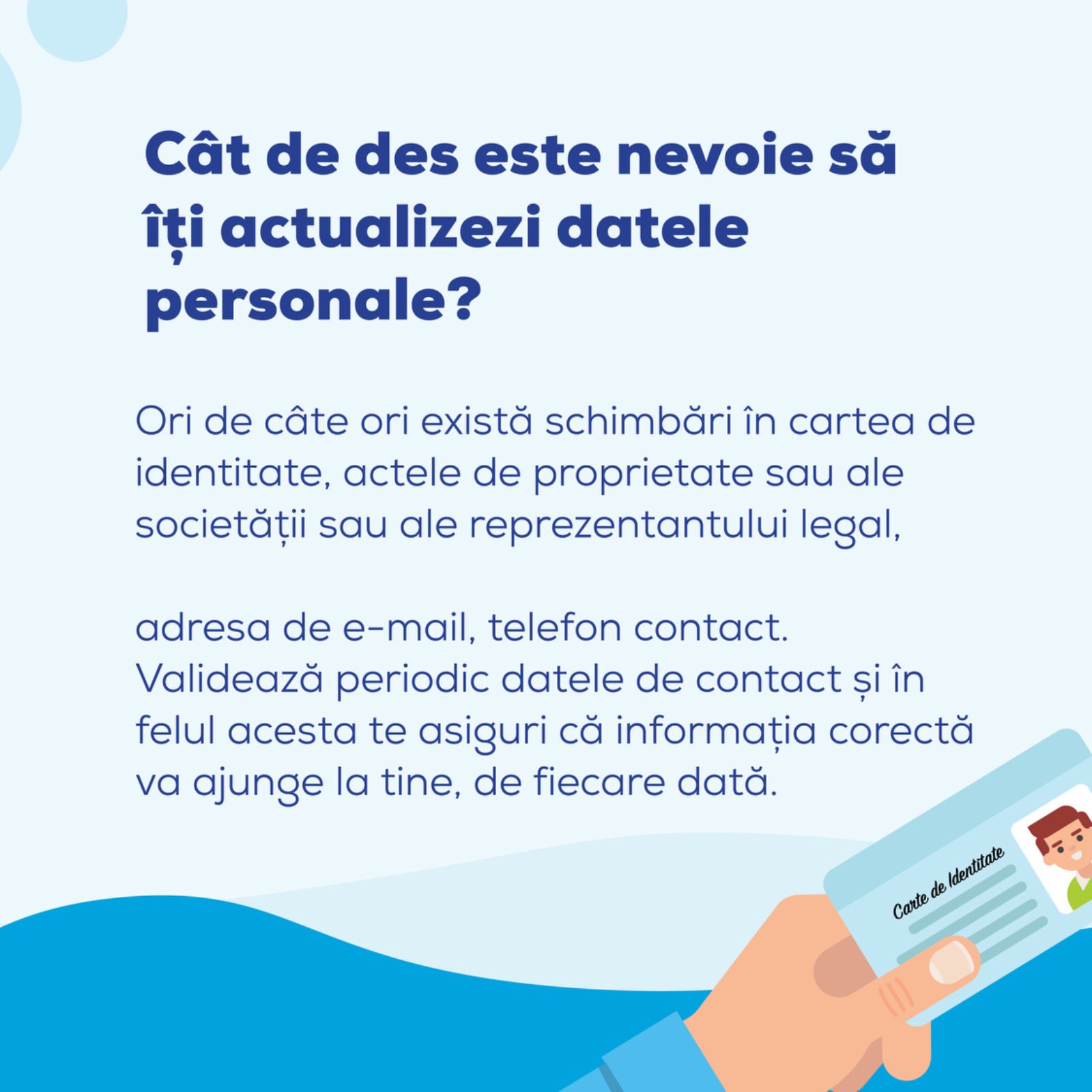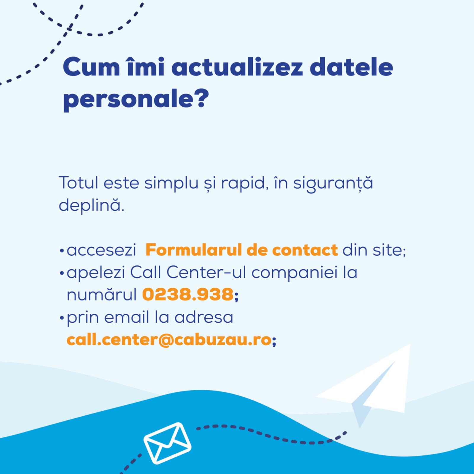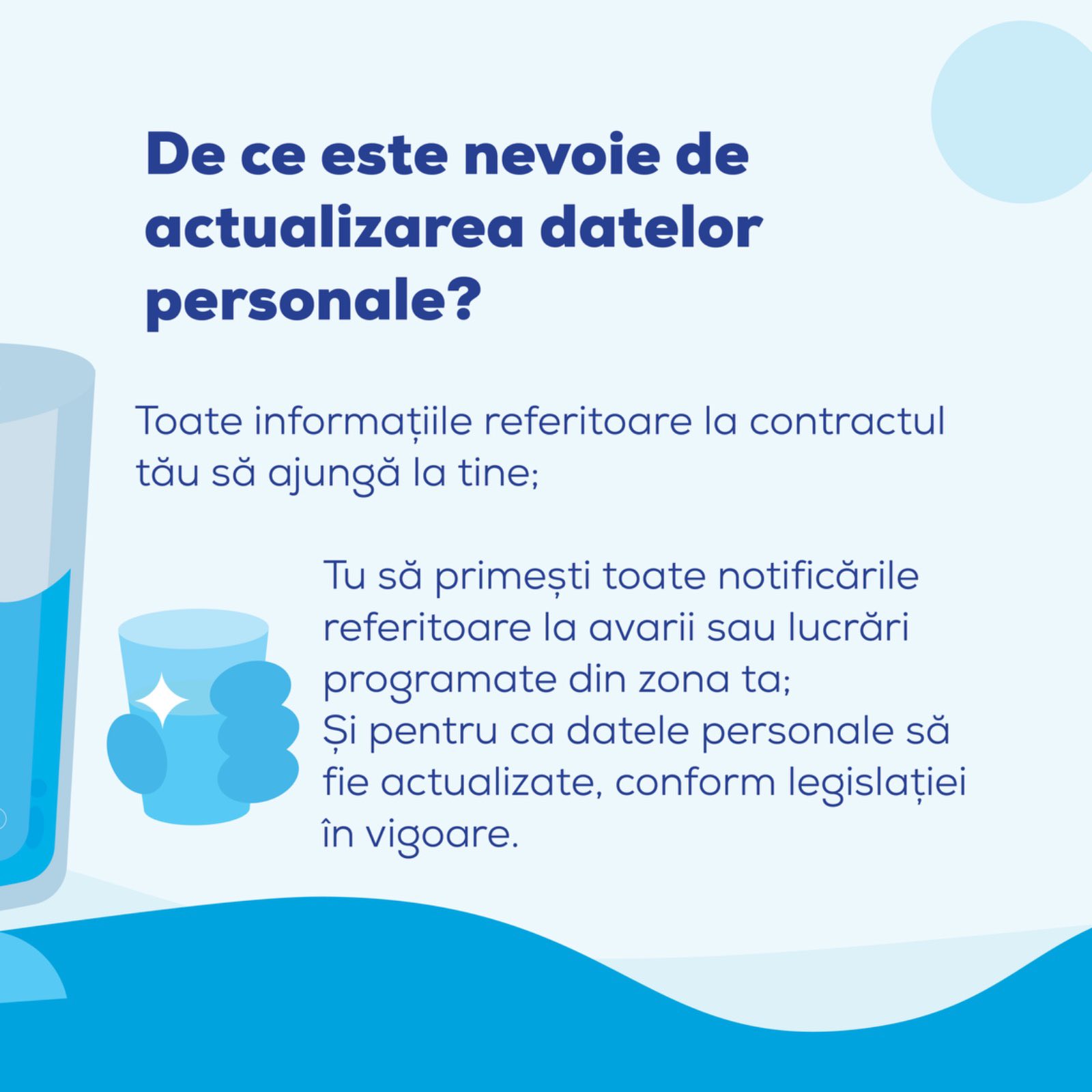 Validează și actualizează datele tale personale pentru a primi fără întârziere toate notificările privind intervențiile sau lucrările programate din zona ta, documentele și informațiile contractuale să ajungă direct la tine, în siguranță și fără erori și, de asemenea, pentru a asigura conformitatea cu legislația în vigoare privind actualizarea datelor utilizatorilor serviciilor publice.