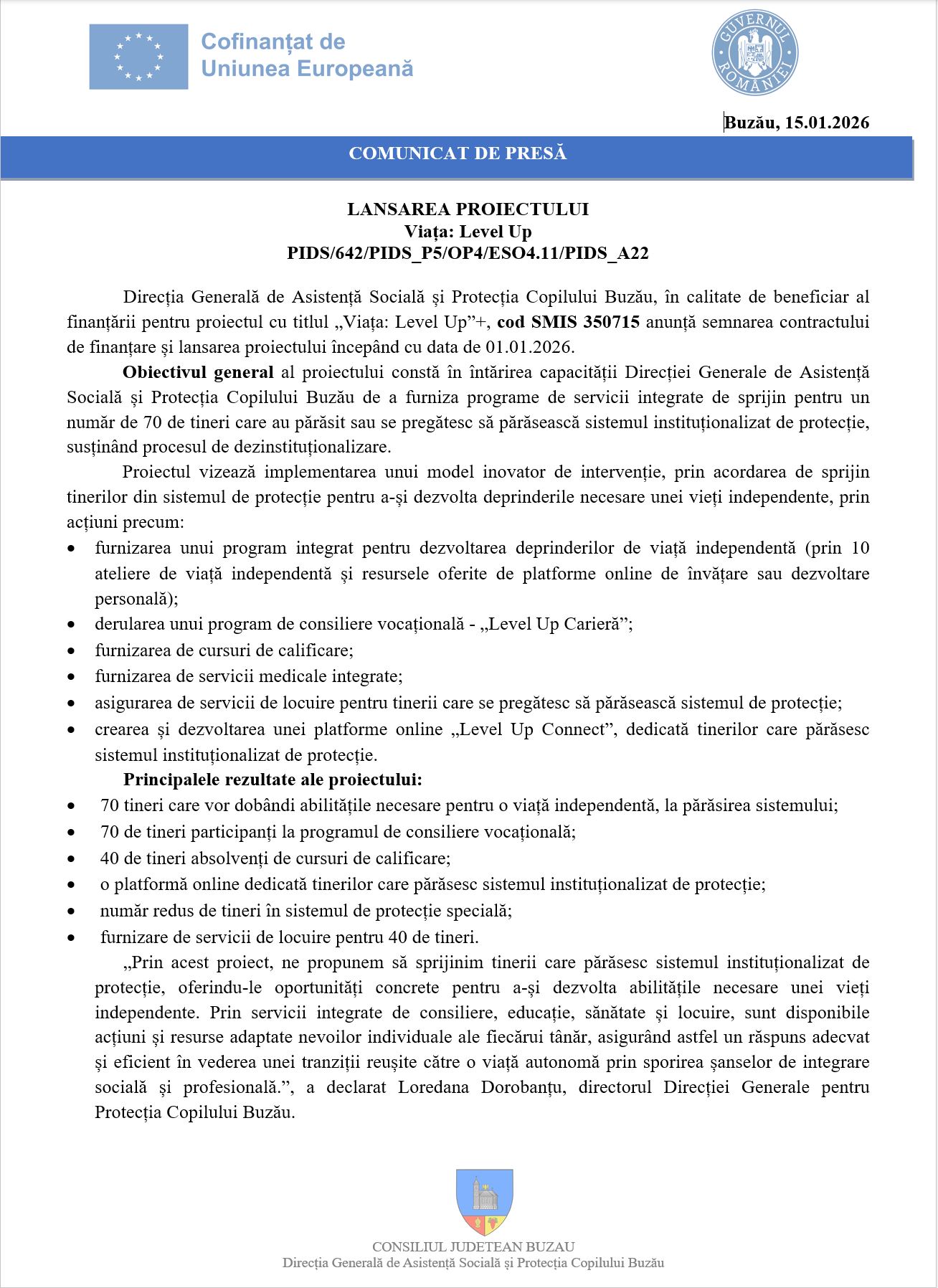 DGASPC Buzău – COMUNICAT DE PRESĂ