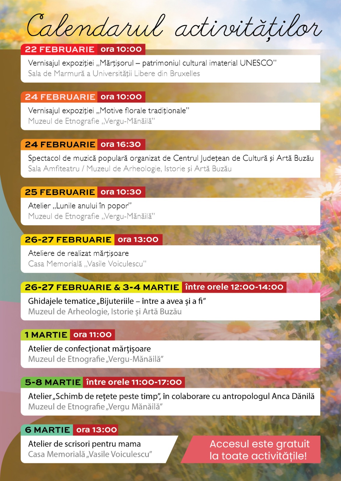 programului *„Expresii de primăvară”* este GRATUIT, demers prin care muzeul