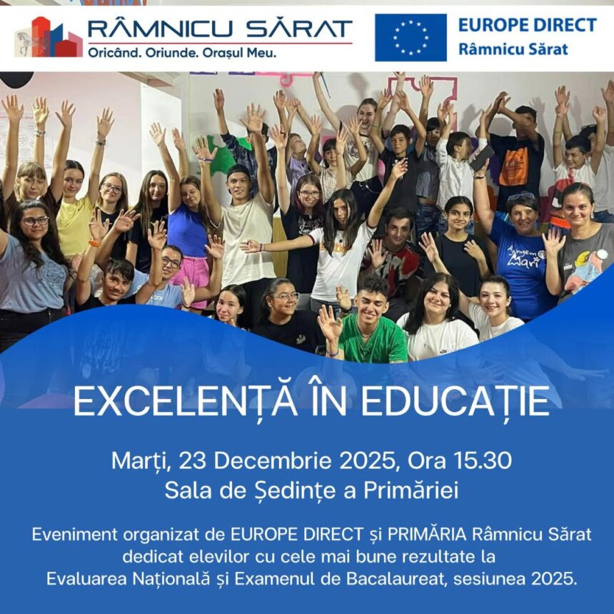 Eveniment organizat de Europe Direct Râmnicu Sărat și Primăria Municipiului Râmnicu Sărat, în semn de apreciere pentru elevii care demonstrează că educația este cheia viitorului.