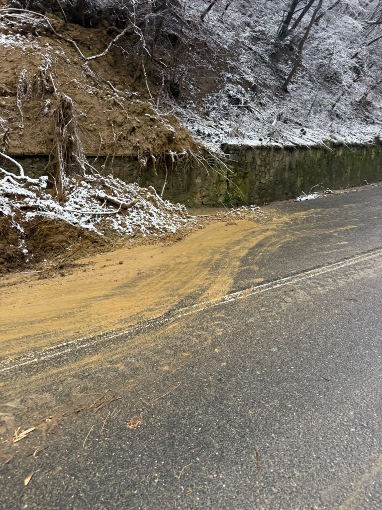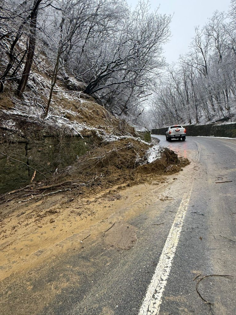 vale și a căzut pe partea carosabilă. Stratul de pământ și aluviunile
