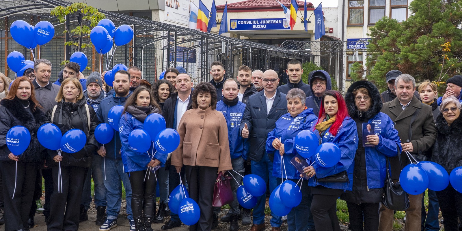 Moraru a fost însoțit de un grup de susținători, atât de la USR, cât