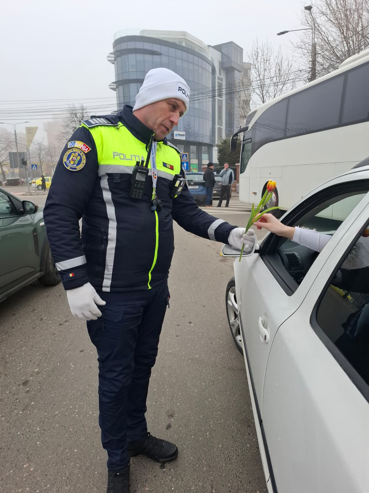 cerut „actele la control”, ci au oferit câte un mărțișor și flori