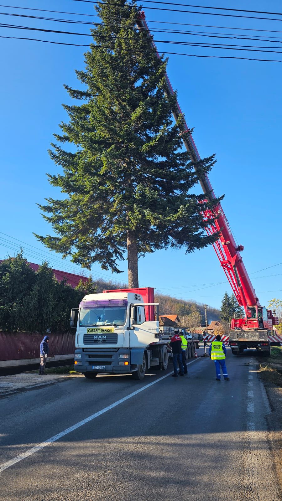 bradul uriaș și l-au transportat cu mare grijă. Pomul a fost déjà