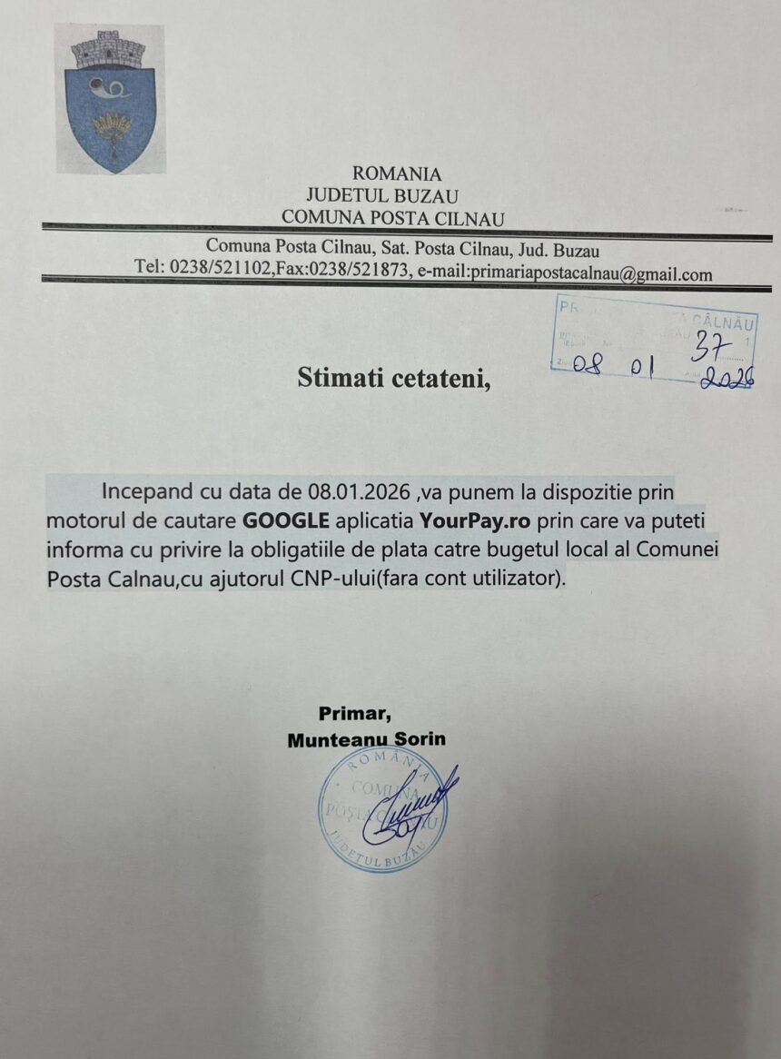 Primăria comunei Poșta Câlnău: INFORMARE!