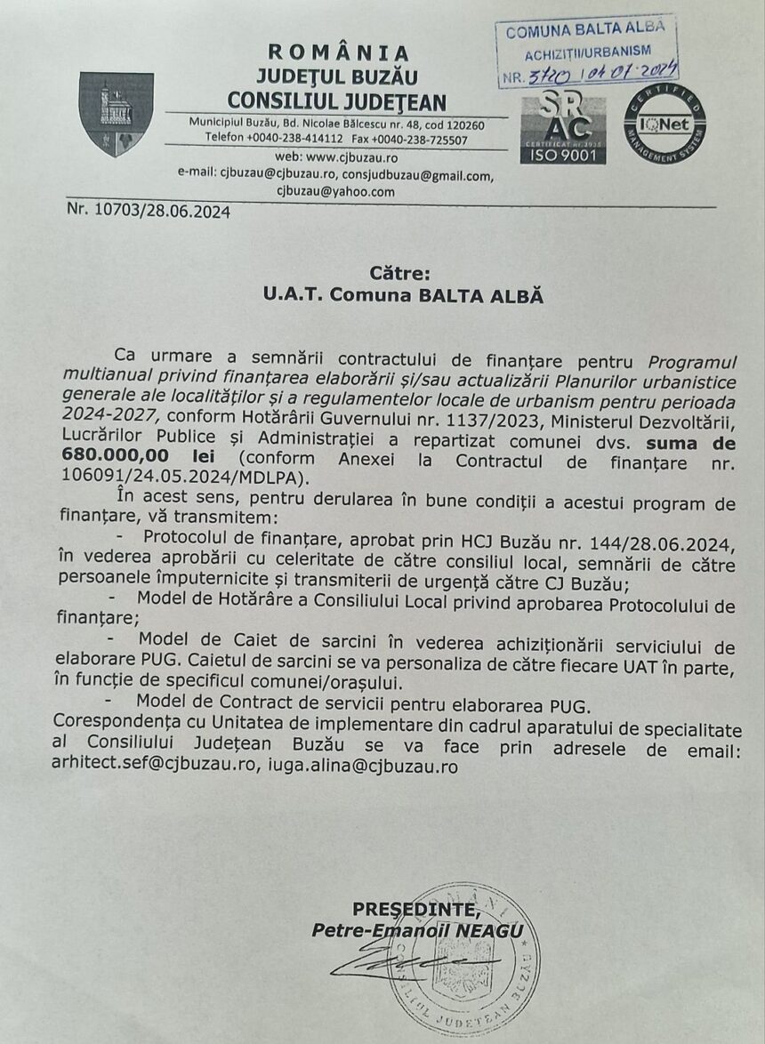 In viitorul apropiat toți cetățenii vor beneficia de Carte Funciară gratuită pentru toate proprietățile: terenuri, curți construcții, clădiri aflate în intravilanul localităților Balta Albă, Băile, Amara si Stavarasti!!!
