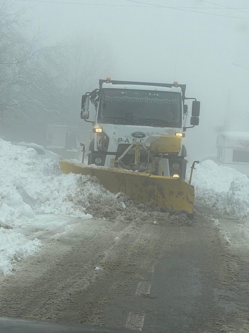 Un utilaj de deszăpezire circulă în permanență pe drumurile județene și