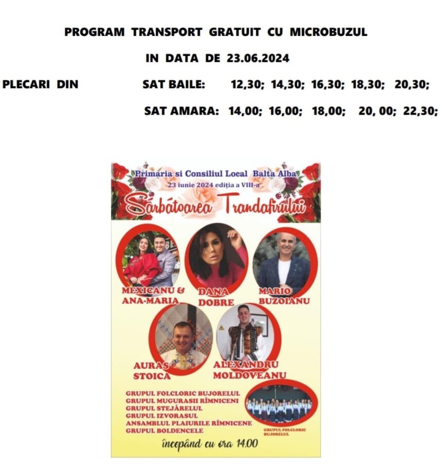Programul de transport pentru cetatenii din satele Băile și Balta Albă!!!