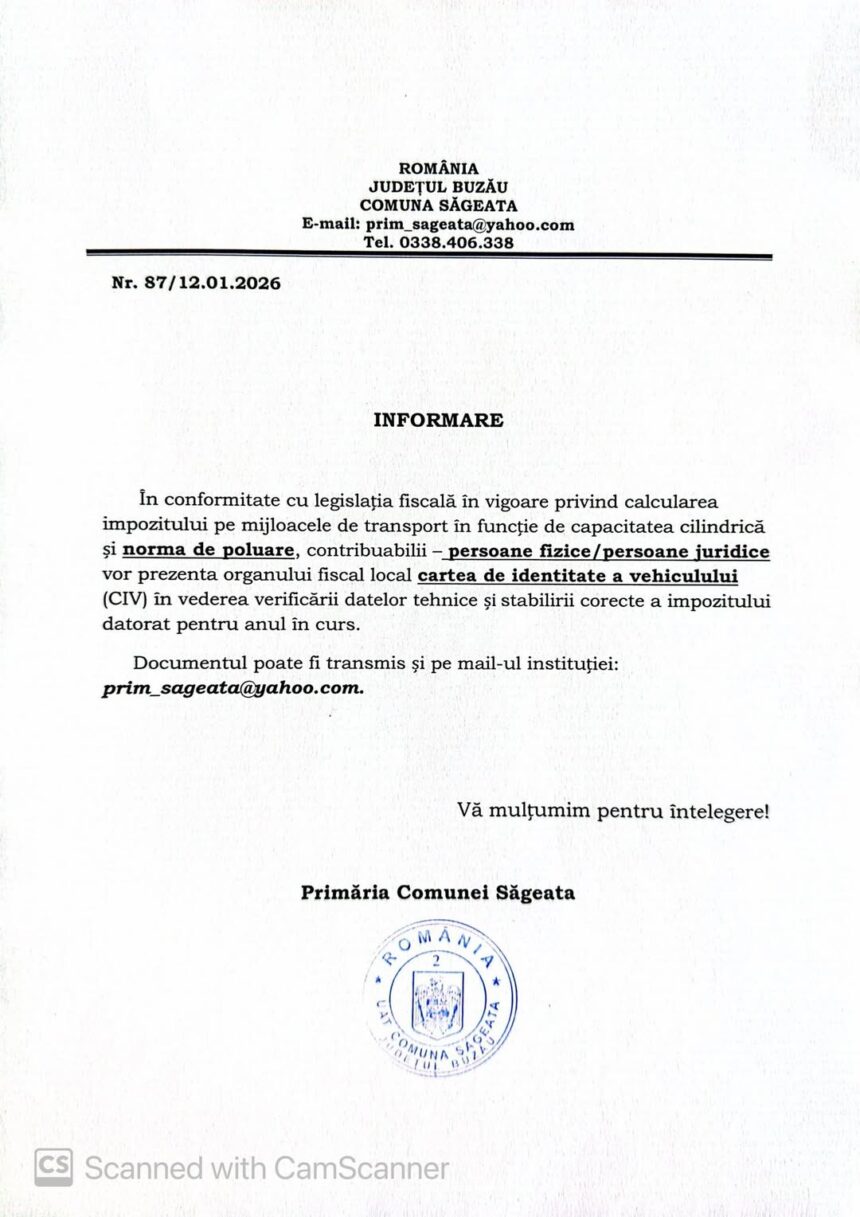 Primăria Săgeata: INFORMARE