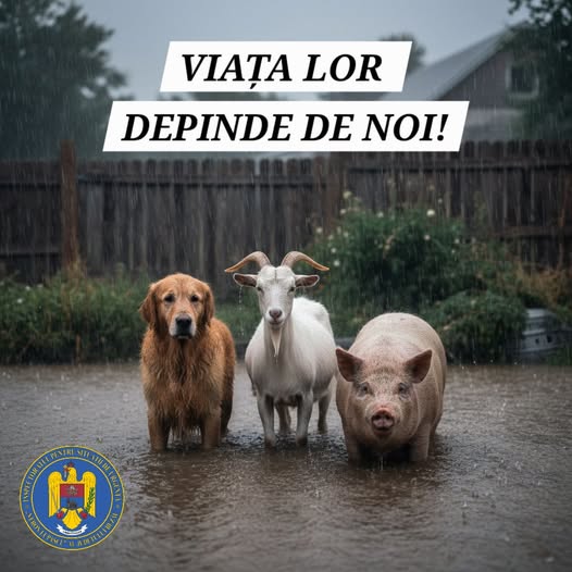 În perioadele cu ploi torențiale și inundații, nu doar oamenii sunt în pericol. Și animalele – de companie sau de fermă – pot fi surprinse de creșterea bruscă a apelor. Viața lor depinde de deciziile și grija noastră.