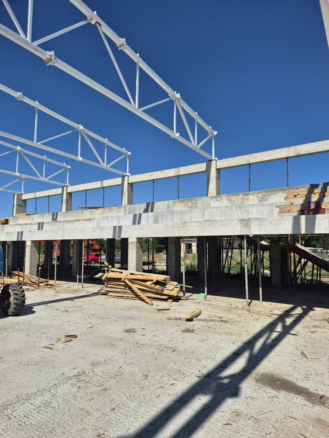 Structura metalică a fost montată, iar echipele de muncitori lucrează în