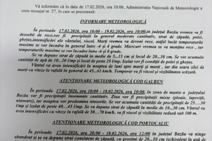 Atenționare meteorologică cod galben 17.02.2026 ora 10:00 - 18.02.2026 ora 10:00 Atenționare…
