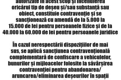 Abandonarea, aruncarea sau ascunderea deșeurilor, păstrarea lor în locuri neautorizate ori incendierea…