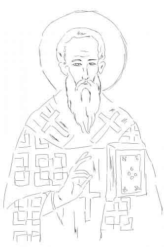 Iacob episcop  apare ca un bărbat înaintat în vârstă, cu părul și barba lungă, albe, cu frunte înaltă și față ridată. Înfățișat frontal, cel mai adesea până în talie, are corpul acoperit cu un felon alb cu negru, decorat pe toată suprafața cu cruci și un epitrahil decorat, de asemenea, cu cruci mari. Sfântul binecuvântează cu mâna dreaptă, în timp ce în mâna stângă ține Evanghelia, adesea închisă.