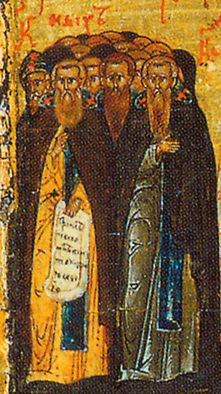 Păgânii etiopieni au atacat Mănăstirea Sfântului Sava cel Sfințit în secolul al VIII lea, crezând că mănăstirea adăpostește multe bogății. Pentru că nu au găsit bunuri materiale, aceștia au decis să îi treacă prin ascuțișul sabiei pe viețuitorii de acolo. Monahii, sfătuiți de Starețul Toma, au zis: ,,Noi din lume am fugit în această pustie pentru dragostea lui Hristos, și prearușinos lucru ar fi să fugim din pustie de frica oamenilor. De ar fi să fim cu toții junghiați aici, junghiați vom fi pentru dragostea noastră pentru Hristos pentru Care am și venit să locuim aici.” Astfel, pe unii dintre ei, arabii i-au ucis cu săgeți, iar pe alții i-au închis de vii în peștera Sfântului Sava. La ușa peșterii au pus apoi foc, astfel încât monahii dinăuntru au murit cu toții sufocați de fum. Așa și-au dat sfintele lor suflete mucenicii lui Hristos. Mucenicia lor preaslăvită a fost înaintea Praznicul Luminat al Învierii Domnului din anul 796 după Hristos, când pe scaunul împărăției Răsăritului se aflau Constantin și Irina, iar Patriarh al Ierusalimului era Arhiereul Ilie.